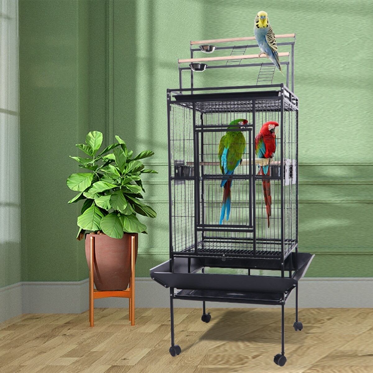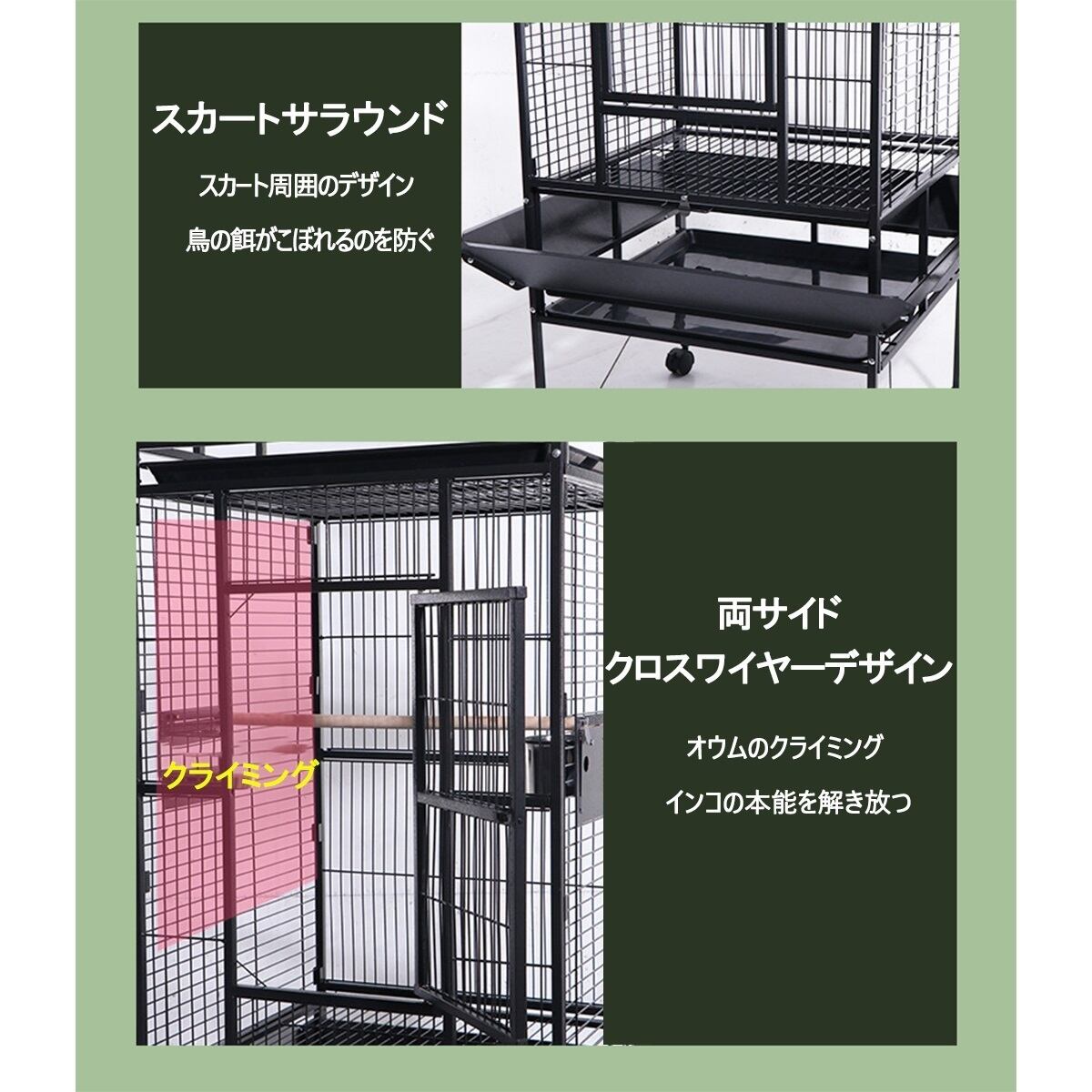 【大型鳥かご】高さ173cm。高いスペースに立つための木材のとまり木でトップを開きます/中小規模の鳥やオウムに最適です。この鳥かごを所有するということは、あなたの鳥が居心地の良い部屋、複数の休憩所、楽しい遊び玩具、広々とした遊び場を持っています。