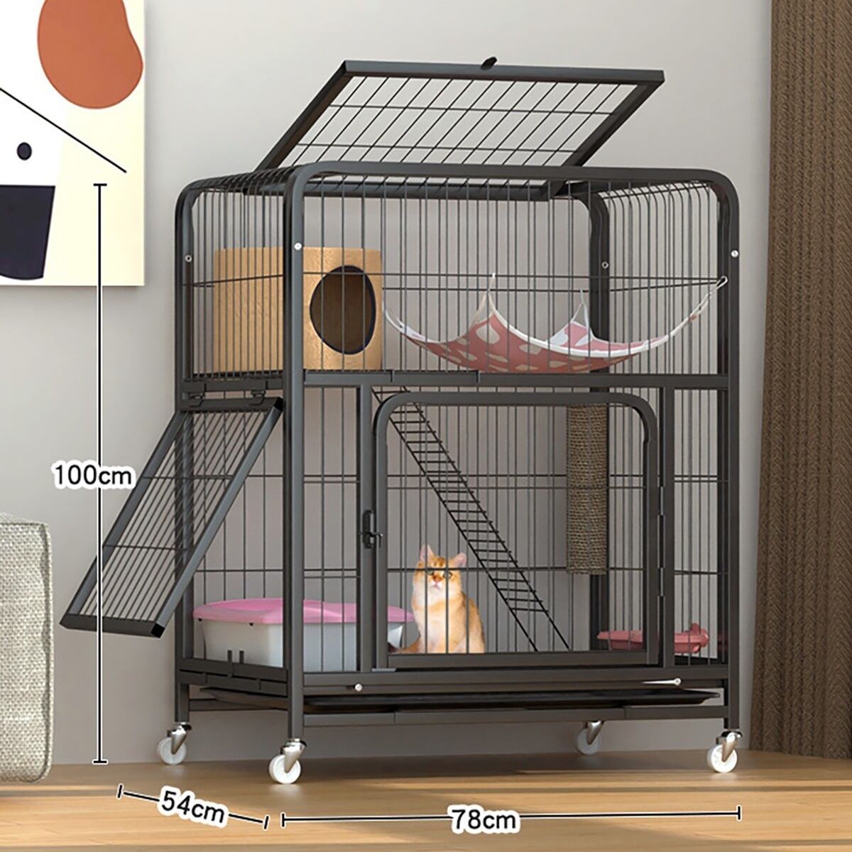 猫 ケージ 折りたたみ キャットケージ ダブルドア ステップ台付き 給餌ボウルと猫ハンモックを含む 掃除しやすい 脱走防止 猫ケージ ネコハウス 多段 組み替え自由 簡単組み ブラック
