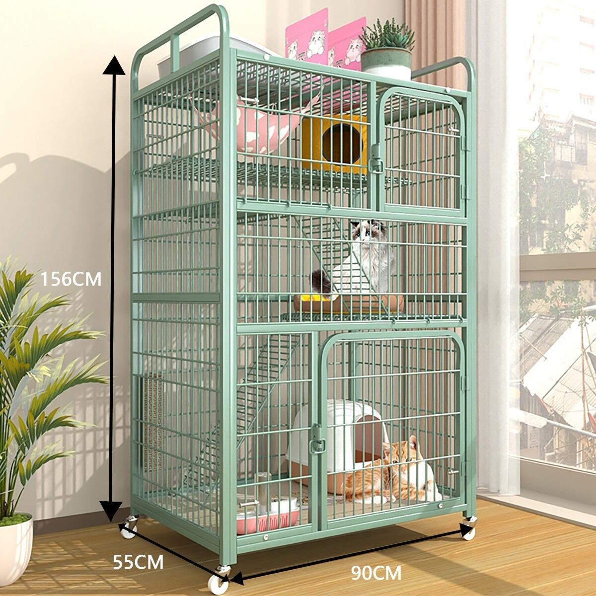【大型のネコちゃんでも広々快適】十分なスペースがあり、ケージにトイレ、クッション、おもちゃや水飲み器などのアイテムを設置ことができ、留守番中時にも猫ちゃんがケージの中でのんびりでリラックスで過ごせて、窮屈な思いをさせません。