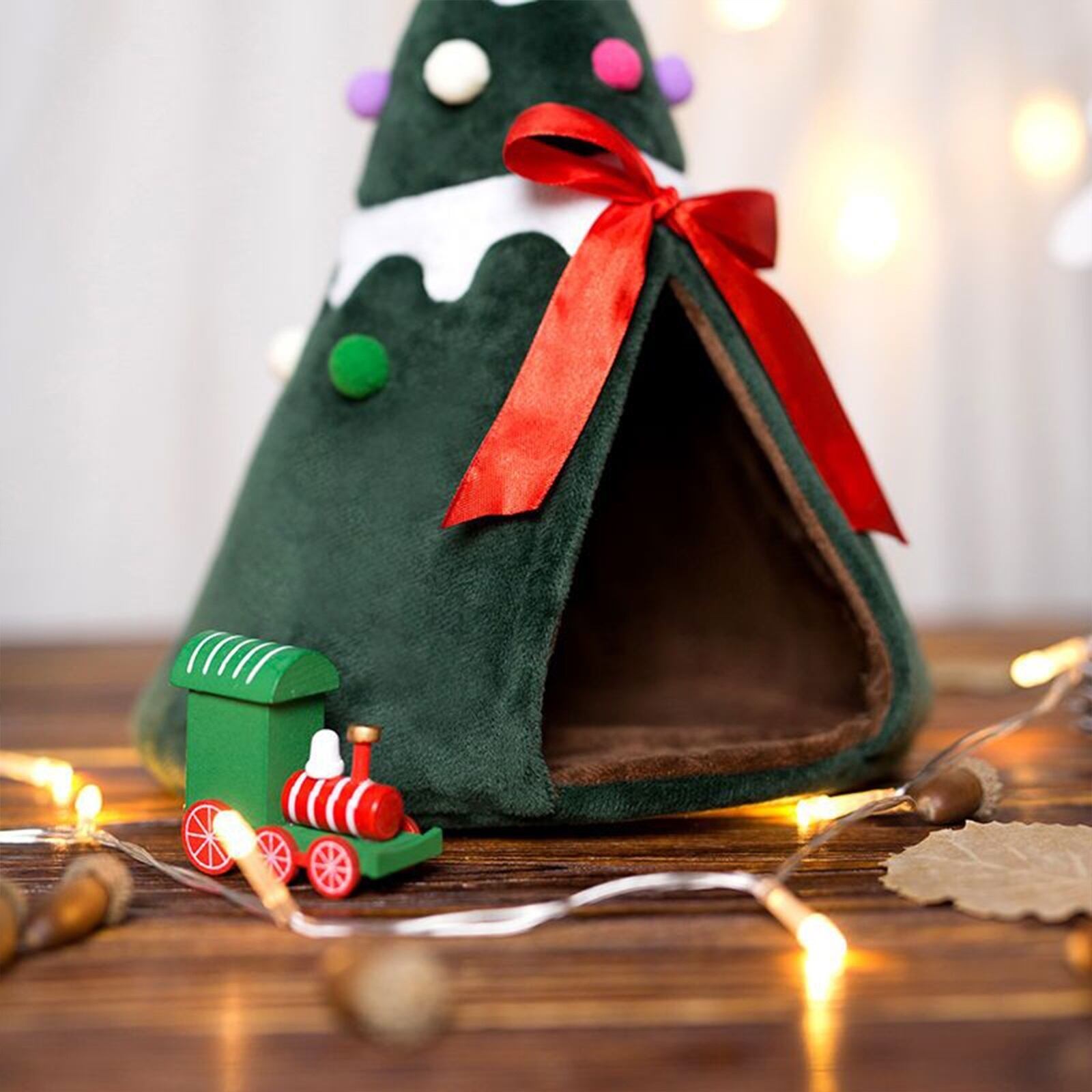 綿生地を採用し、耐久性があり、着心地がよい。半閉鎖式ゆりかごの設計は、安全と庇護を感じさせる。洞窟ベッドは猫の体の大部分を収容し、あなたの猫に良い睡眠体験を与えることができます。底部のデザインはベッドを安定させることができます。クリスマスツリーの形をした猫小屋は、ペットの注目を集め、あなたの家を飾るのにもぴったりです。