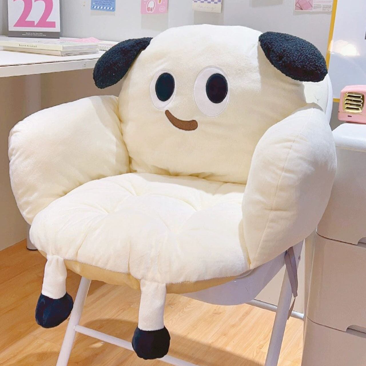 大きな目のかわいい半包囲クッション。クッションで包み込まれる快適さで、学習やオフィス、寮でもぴったりです!柔らかく肌触りの良い素材で、しっかりと充填されています。